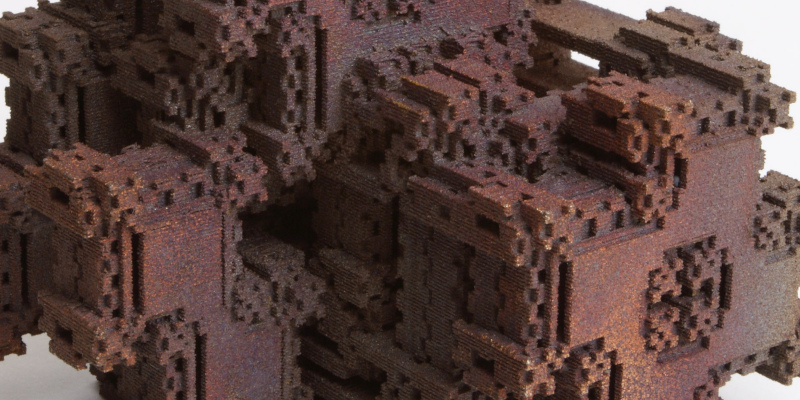 creates 3-dimensional objects by printing steel powder with a binder. In an oven the objects are heatened until the binder is vapourised and the metal powder is sintered. After this, the porous objects are infiltrated with liquid bronze. The objects differ in size, approximately 80 x 80 x 80 mm.